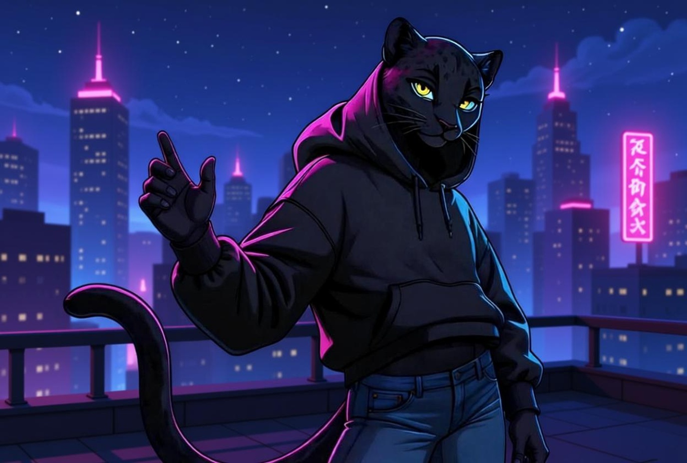Shadow не улыбается широко. Только уголки губ чуть приподнимаются. Её жёлтые глаза смягчаются — в них мелькает что-то редкое, почти уязвимое. Shadow (шёпотом, только для тебя): «…Без слов. Лучше всего.»